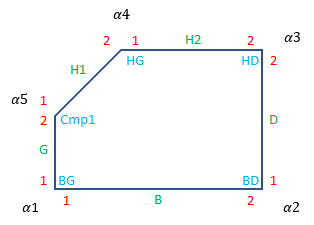 N.B. : pour l’angle α4 du pentagone pointe (piloté par le paramètre Cmp1) la convention est la suivante :