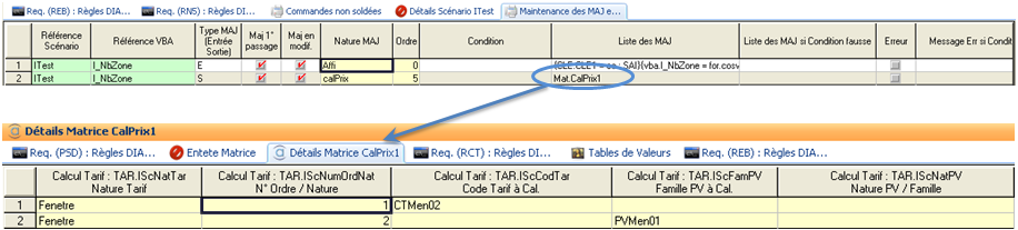Le calcul complet du tarif pour un contexte ou une partie du calcul du Prix de base et des plus-values peut être paramétré en sortie des VBA à partir de l’outil de maintenance des Entrés Sorties. Le lancement du calcul de tarifs s’effectue à l’aide d’une matrice de type Tarif dont les sorties sont prédéfinies.