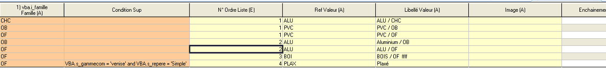 Prenons pour exemple, la mise jour d’une VBA Isolation Totale et d’une VBA Nb de Zone qui dépendent de la matière et du type de fenêtre.