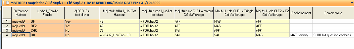 MajDat : matrice permettant la gestion de mises à jour en sortie de matrice en fonction d’une période référence.