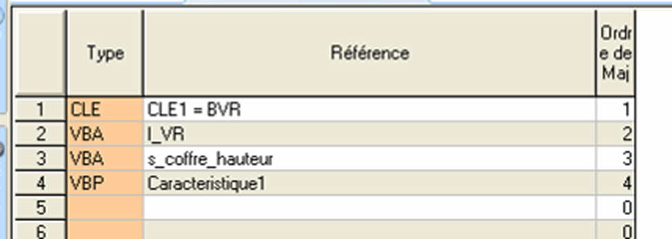 ![]() | Dans cet exemple : La clé1 d’affichage BVR sera d’abord mis à jour, puis la VBA I_VR puis la VBA s_coffre_hauteur et enfin la VBP caractéristique1 |