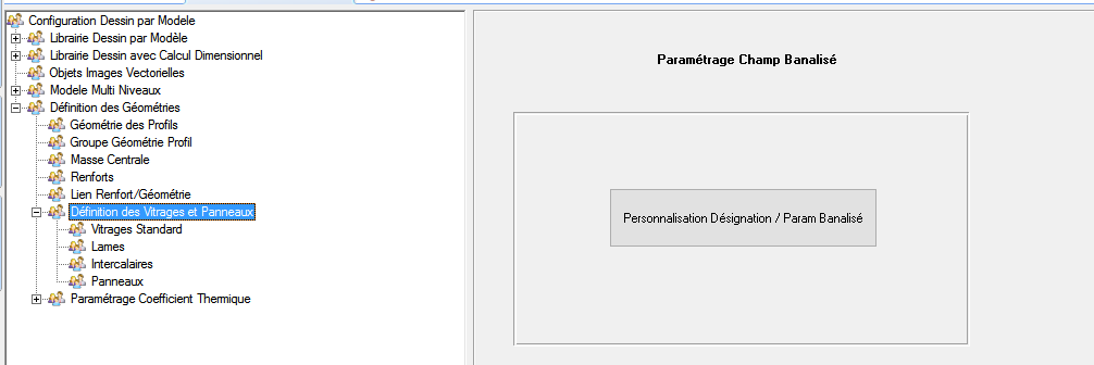 Cette application permet de définir les vitrages et panneaux utilisés lors des calculs de remplissage.