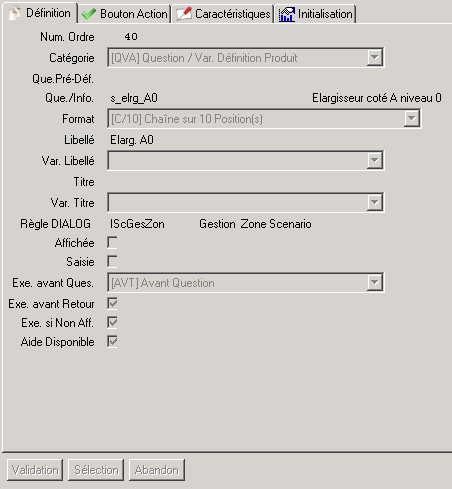 Il est possible de gérer dynamiquement l’affichage et l’initialisation des questions grâce au « moteur » comme décrit ultérieurement.