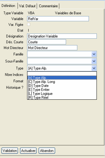 Choisir le format de la variable en fonction du type sélectionné.