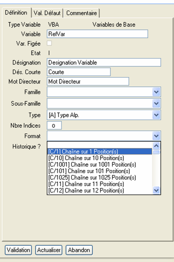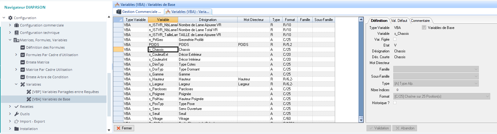 La définition des VBA se fait dans « Navigateur Diapason è Configuration è Matrices, Formules, Variables è Variables è [VBA] Variables de Base”: