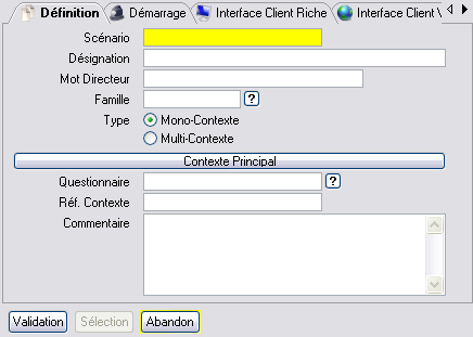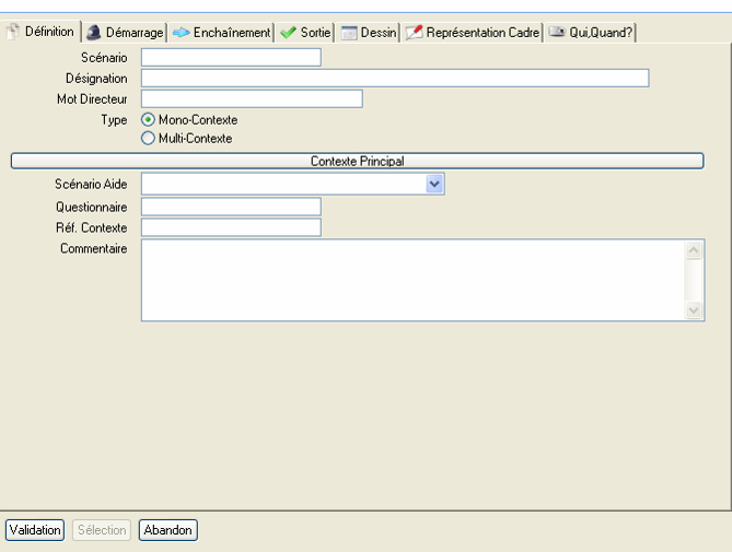 Pour créer un Scénario, choisir l’action « création » (F9) et remplir les données.