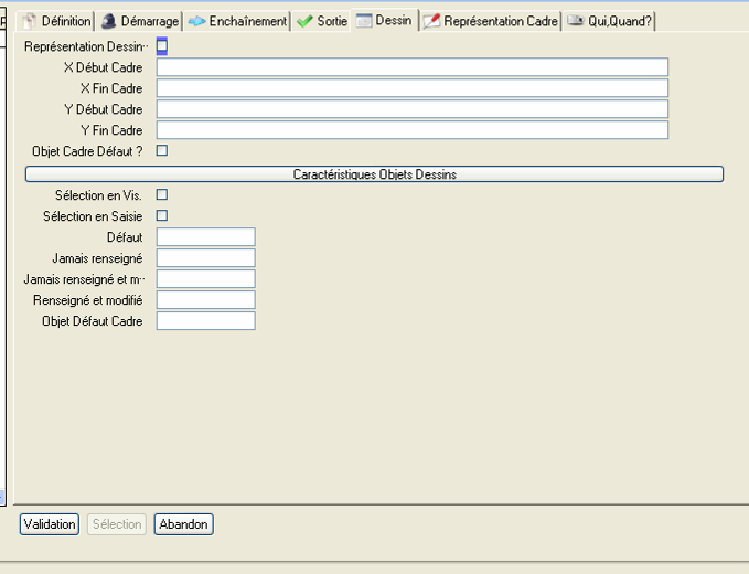 Si le dessin que l’on veut afficher est différent du cadre défini, il faut renseigner l’onglet « Représentation Cadre » :