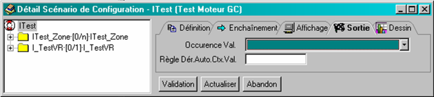 L’onglet « Sortie » permet de choisir la requête qui va être exécutée à la validation du contexte et son occurrence :