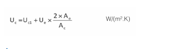 Le coefficient surfacique moyen du coffre sous dalle ou sous linteau Uc se calcule d'après la formule suivante :