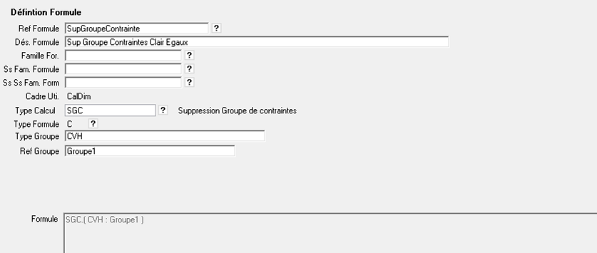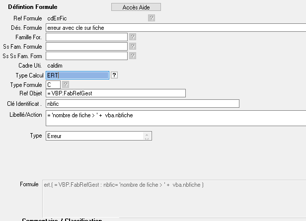 Type Formule : Type de la variable a récupérer : Numérique, Caractère ou Logique