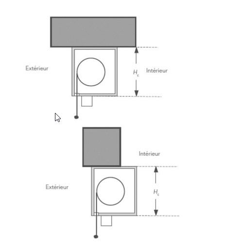 Dans le cas d'un coffre derrière linteau associé ou non à une isolation par l'intérieur ou l'extérieur, la performance thermique s'exprime à l'échelle de la paroi intégrant le coffre à travers un coefficient de transmission surfacique Up .