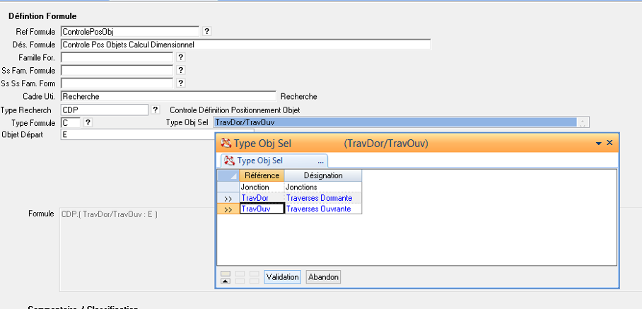 Ce type de formule a pour but de donner la liste exhaustive de tous les objets de type jonction, traverse dormante et traverse ouvrante dont la position H ou L n’est pas défini.
