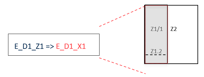 Si l’objet de départ est E_D1 et que l’on demande le type d’objet Zone, le résultat de la formule sera NO, car sous E le châssis 1 a la zone E_D1_Z2 non définie.