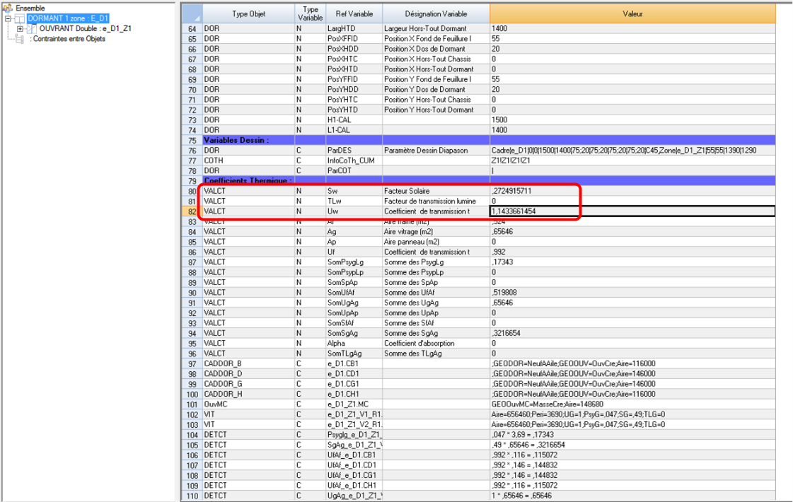 Le calcul de coefficient thermique ne peut être réalisé qu’à partir du moment où tous les objets Dormant, Traverses, Ouvrants et Remplissages ont été calculés.