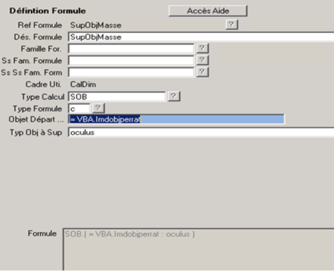 La référence de l’objet à calculer : la valeur peut être exhaustive (E ; E_D1…) ou bien donnée sous forme de VBA ou de formule = VBA.XXX