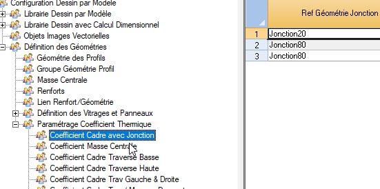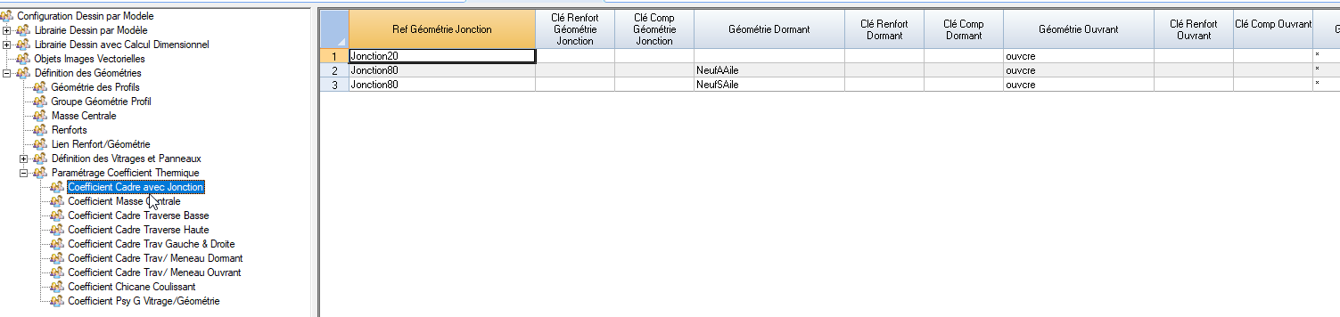 Plusieurs outils de paramétrage sont donc nécessaires pour spécifier les valeurs des Ufi des différents groupes de profils : Coefficient Cadre Avec Jonction pour le calcul a l’ensemble ( pris en compte du profil de jonction) et Les coefficients cadre Traverse basse, , haute , gauche & droite pour le calcul au chassis ( sans prise en compte du profil de jonction).