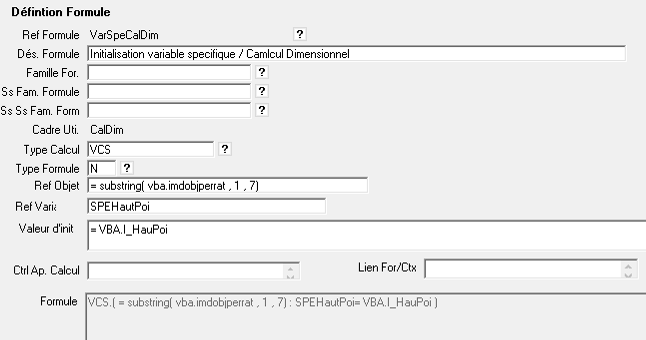 Ctx Forcé à redérouler : Chaque Objet venant d’être Calculé ou recalculé (VBP. IMDObjCal) est lié à un contexte de rattachement (voir paramètre formule CDM) qui sera considéré comme contexte à dérouler. Cette référence de contexte est accessible à partir de la VBP. IMDCtxCal. L’utilisateur peut cependant demander à forcer le redéroulement d’un autre contexte en alimentant dans le champ Ctx Forcé a redérouler, la référence du contexte qu’il souhaite rederouler.