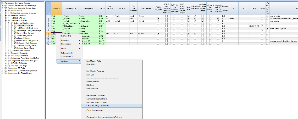 Par exemple suite à l’alignement d’une traverse par rapport à une autre, un certain nombre d’objets liés à la position de cette traverse vont être automatiquement recalculés. Certains de ces objets peuvent nécessiter la mise à jour de VBA sur les contextes qui leur sont associés, ou bien encore la ré-exécution du contrôle global de ces contextes ou le calcul du libellé. Cet outil permet de cibler précisément ce que l’on souhaite ré-exécuter telle ou telle VBA, telle ou telle phase finale du contexte (contrôle global, calcul prix, calcul libellé ou/et Nomenclature de contexte) afin d’être le plus rapide lors du déroulement de ces contextes.