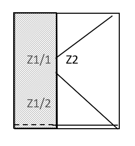 Exemple de découpe d’un dormant deux zones. Z2 est composée d’un ouvrant avec soubassement. L’utilisateur souhaite découper la zone Z1 en deux zones dormantes afin de positionner une traverse horizontale dormante dans le prolongement de la traverse de soubassement.