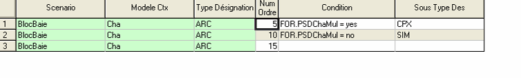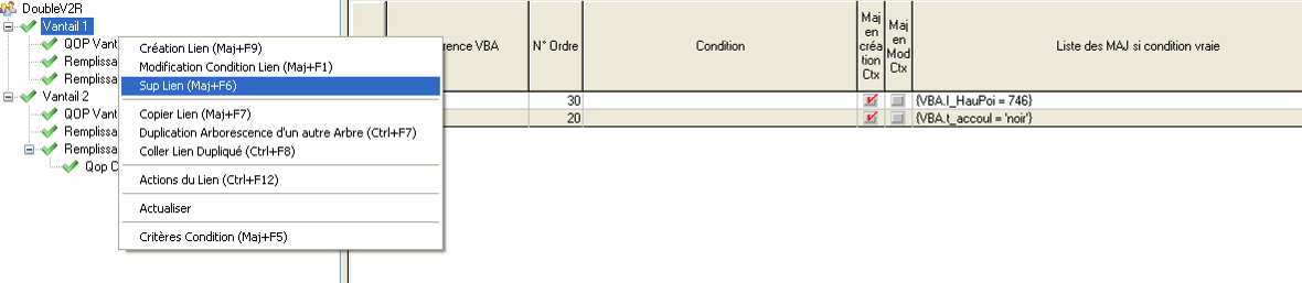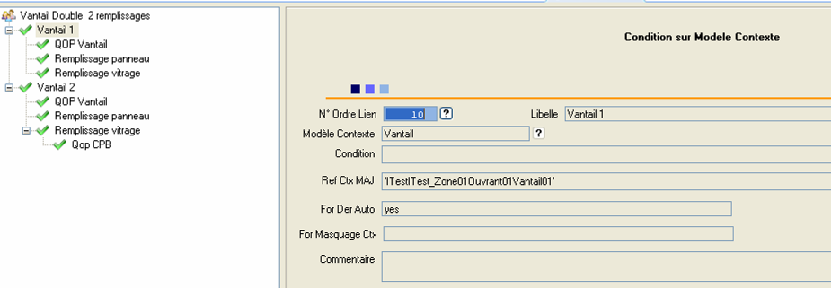 Condition : Condition d’existence de la branche. Exemple : création d’un contexte QOP cadre petit bois si ….