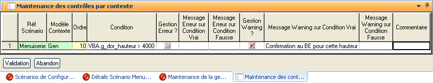 Gestion Warning | Si oui, la gestion de message warning sera activée (le message de warning ne bloque pas la validation du contexte) |
