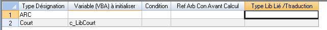 Type Lib Lié / traduction : Permet de lier deux types de désignation, l’un étant la traduction de l’autre dans une autre langue (cf. Traduction libellé plus bas).