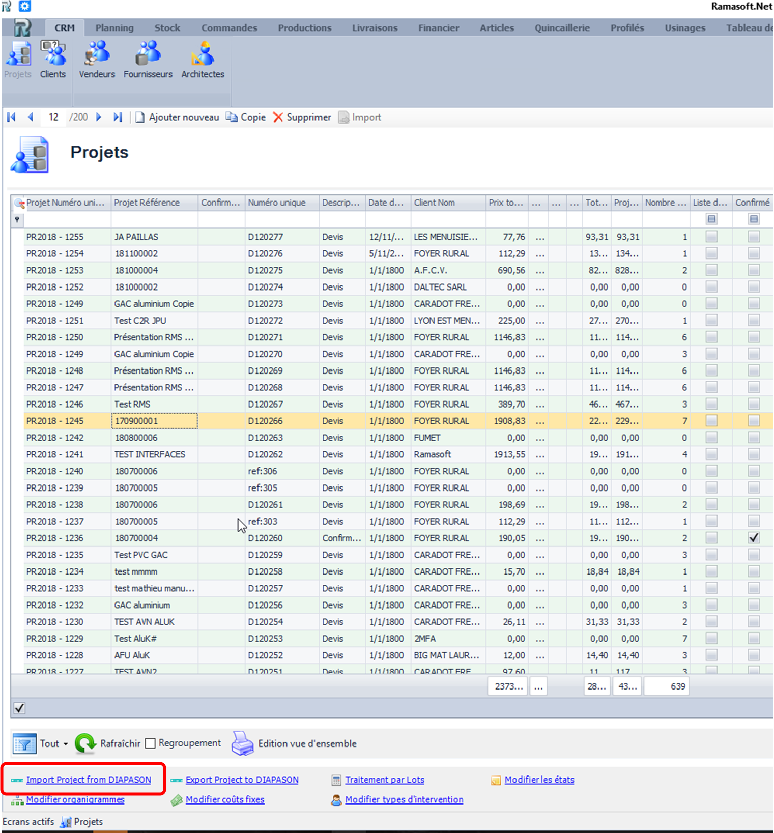 L’import de ce fichier sous Ramasoft doit s’effectué via l’action Import Project from Diapason