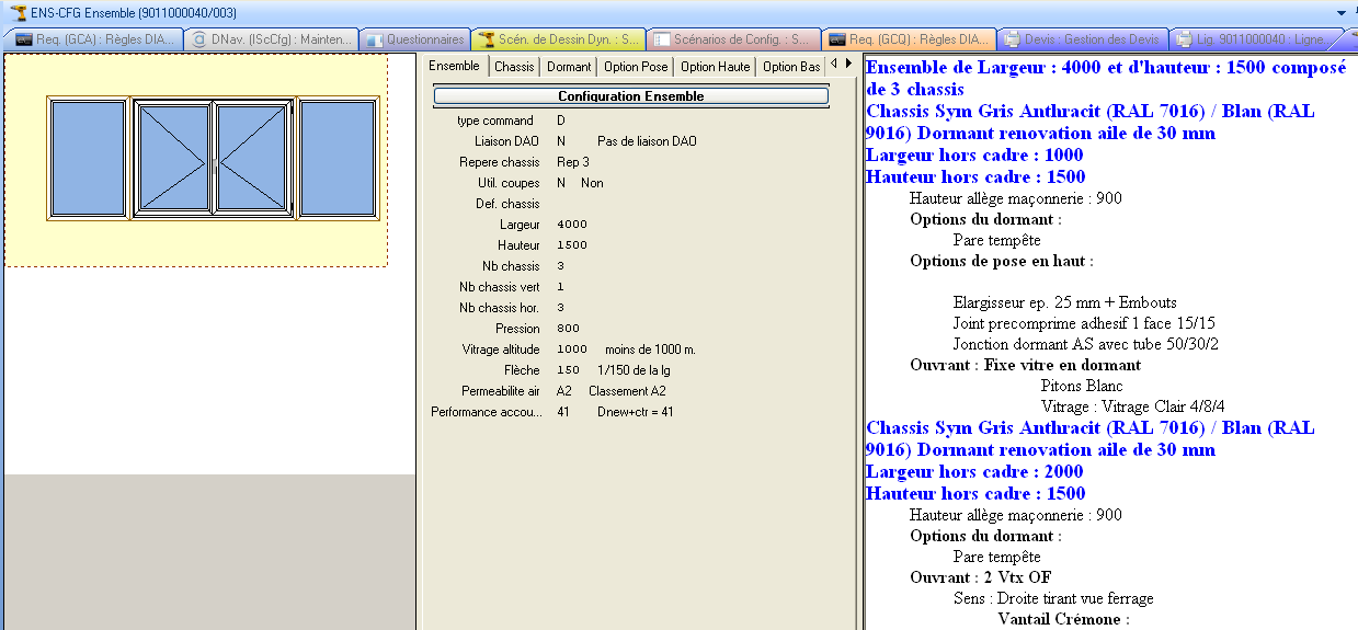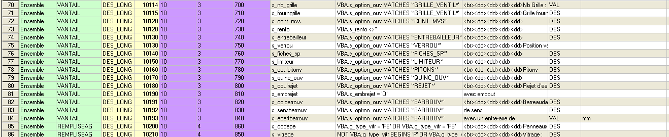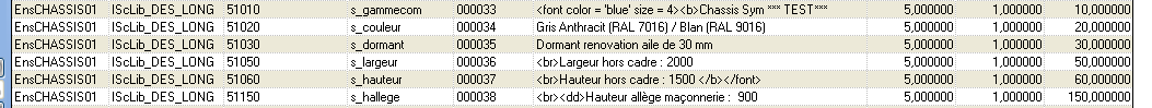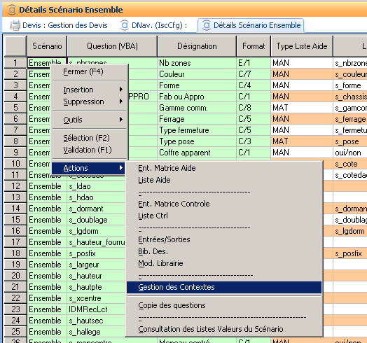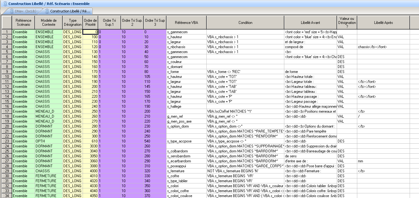 N.B. : les variables alimentées dans des contextes père peuvent être disponibles pour les libellés des contextes fils (par exemple le type de fermeture est disponible dans le contexte Châssis mais aussi dans les contextes Fermeture et Manœuvre) toutefois, leur désignation (DES) n’est plus disponible.