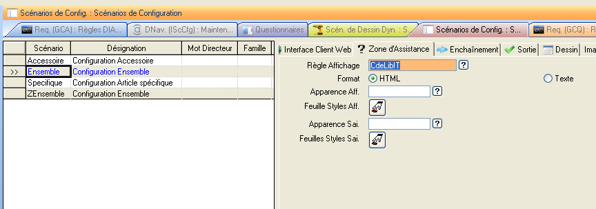 Celle-ci doit être branchée sur l’onglet Zone d’assistance du scénario en règle d’affichage.