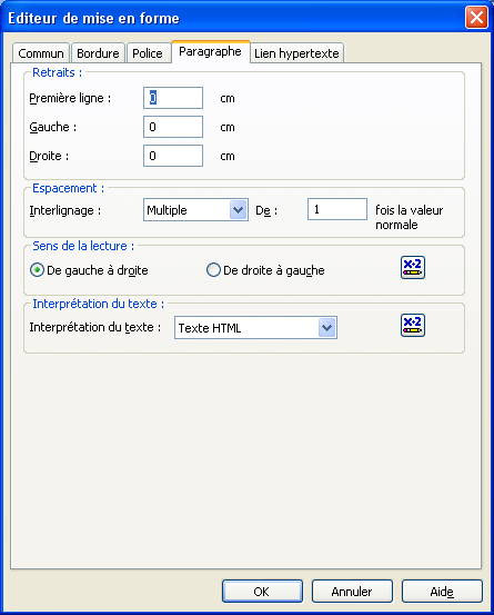 Cocher le Format HTML pour interpréter les attributs s’il y en a.