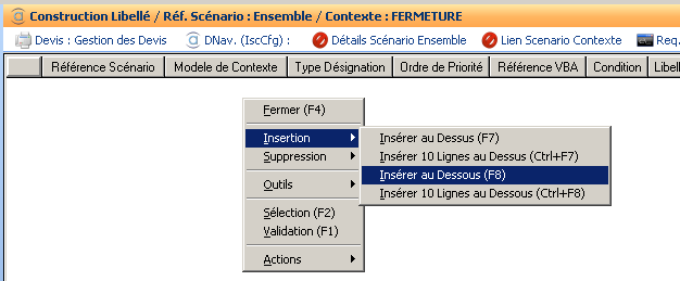 Il faut insérer ligne après ligne les composantes du libellé à générer pour le contexte :