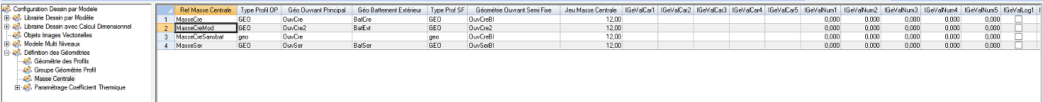 Géométrie Ouvrant Semi Fixe : référence de la géométrie ou du groupe de géométries de l’ouvrant semi fixe.