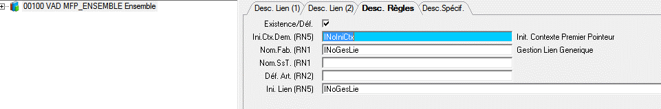 L’interprétation des règles de gestion est effectuée par des requêtes de type RN1 et RN5. Ces requêtes doivent être initialisées sur chacun des liens de la nomenclature générique.