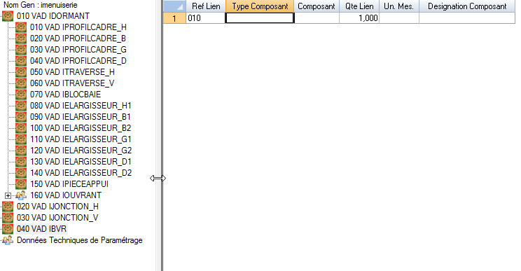 Qte Lien : quantité de lien du composant (pour un composé initialisé par défaut)