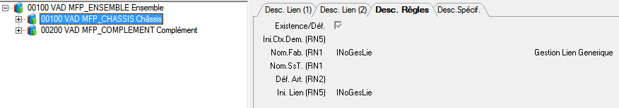 Lors de la suppression d’un lien à partir de l’outil Gestion Liens Fils, les règles de maintenance (EXI, INI, IT, Ctx Tech) sont automatiquement supprimées.