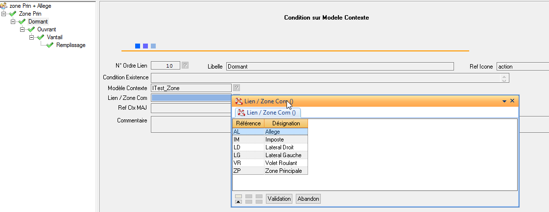 Lien / Zone Commerciale : la branche du modèle de correspondance doit elle être rattachée par défaut aux données d’une zone commerciale (Allège, Imposte, latéral Droit, latéral gauche, Zone Principale ou VR) décrite dans le fichier xml.