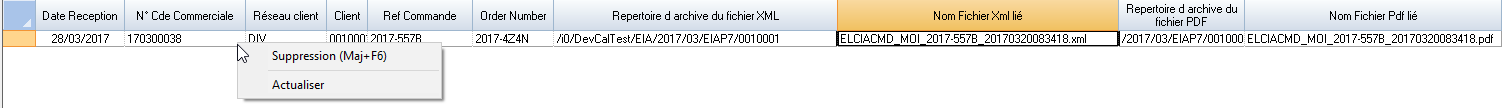 Lorsqu’une erreur Diapason est rencontrée lors de la création de l’entête ou des lignes, la commande en cours de création est automatiquement supprimée et le fichier xml déplacé vers un répertoire paramétrable (voir paragraphe Paramètres Interface Configurateur Web P7).