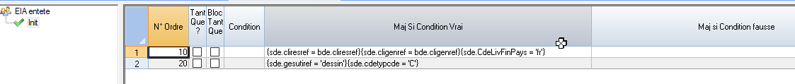 Chacune des lignes rattachées à l’entête de commande (après phase de rupture) devra être initialisée par un arbre de condition à l’image de l’entête de commande.