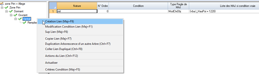Condition d’existence : Condition d’existence de la branche lors de la génération, la condition peut s’appuyer sur les BDE, BDL et BDC disponibles au moment de l’initialisation de la configuration