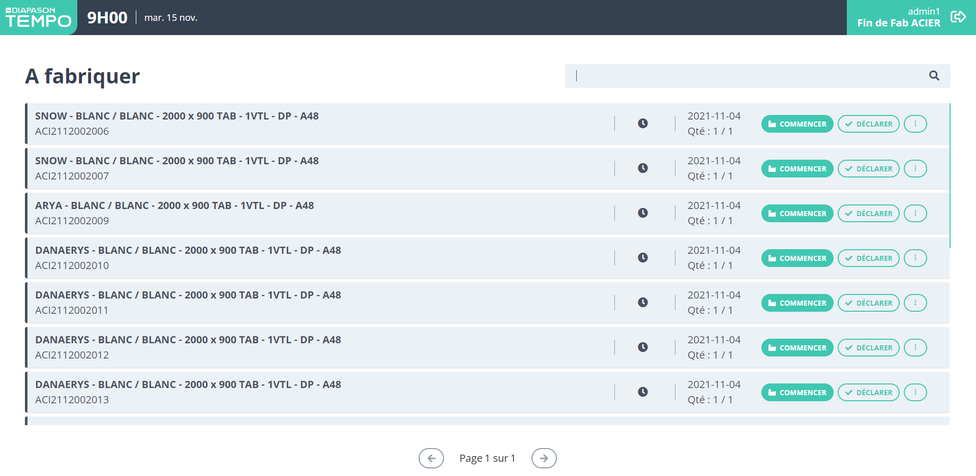 La liste à fabriquer permet à l’utilisateur de visualiser la file d’attente des éléments à fabriquer sur le poste de travail qu’il a sélectionné et d’effectuer des actions sur ces éléments.