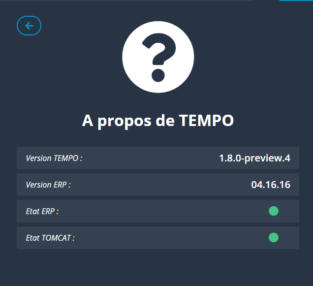 Nouvel écran “A propos de Tempo” pour faciliter le debug