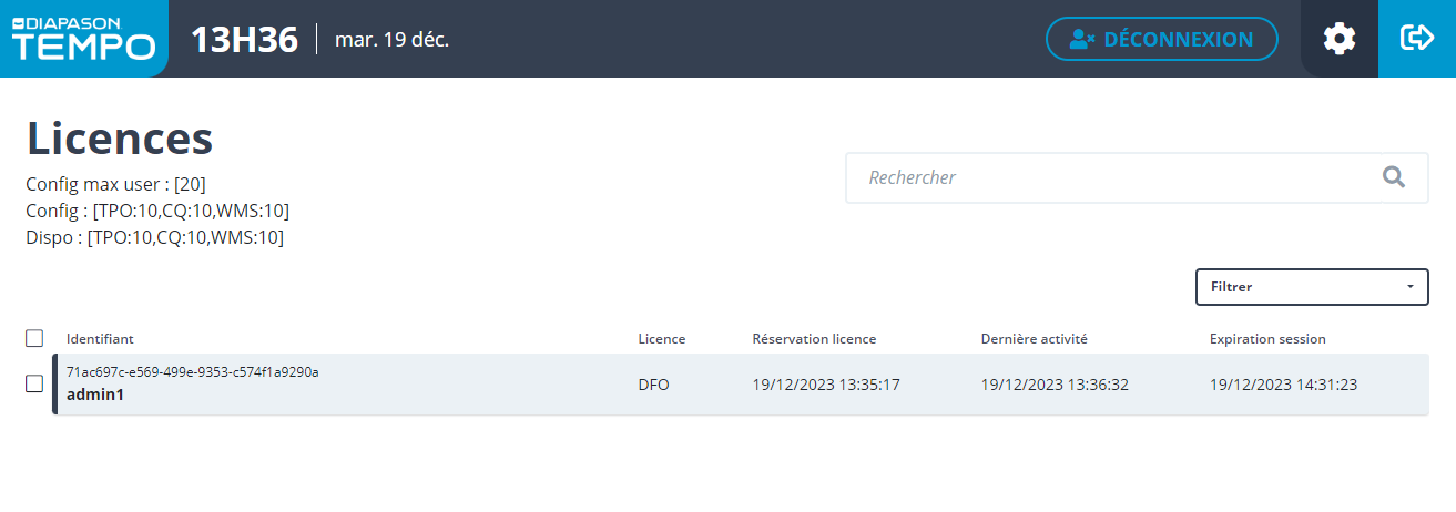 Nouvel écran “Utilisateurs connectés” pour permettre la gestion des utilisateurs connectés (et licences)