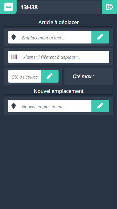 Ecran de déplacement d’articles en stock: