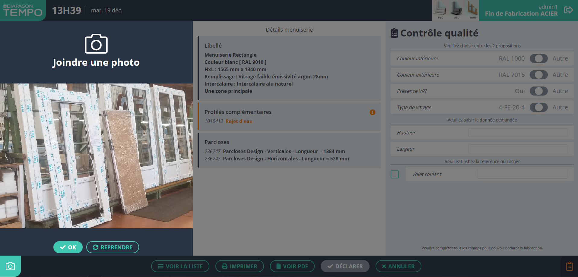 Prise de photo depuis un écran de fabrication