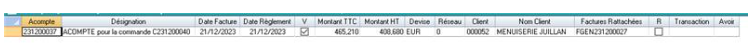 Le montant d’acompte à imputer est à déterminer dans la requête après avoir créé les lignes produits et avant la création de l’entête.