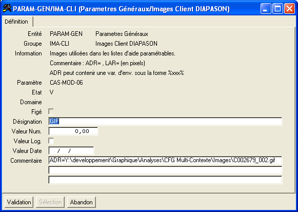 Les images sont elles définies dans le dossier « Images Client DIAPASON ». Le commentaire de ce paramètre doit être structuré avec les données suivantes :