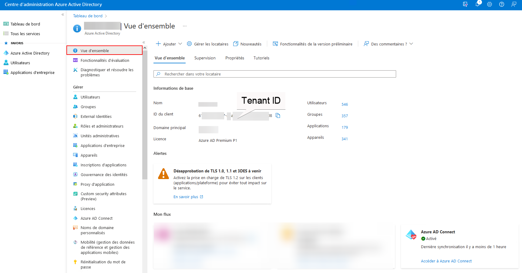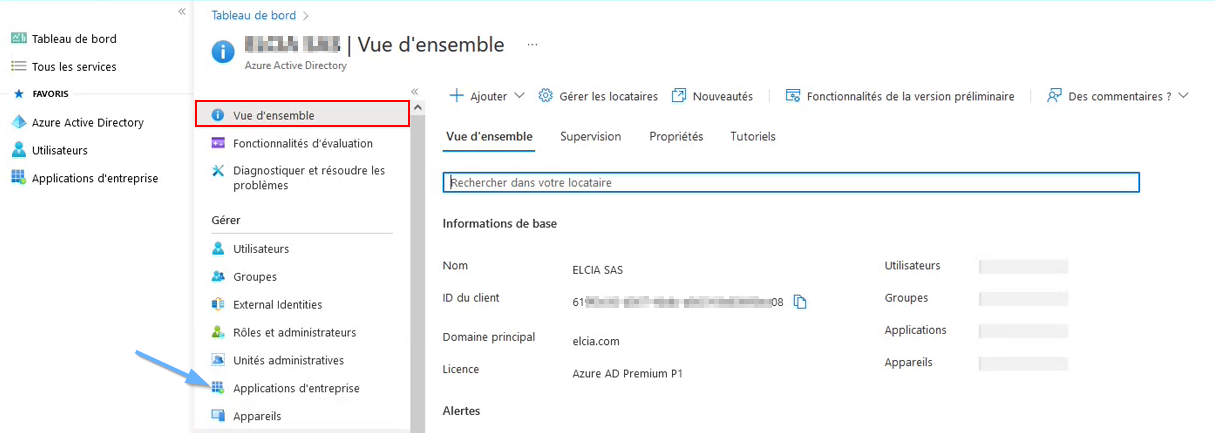 L’administrateur va aller sur Azure AD et arriver sur la vue d’ensemble pour son entreprise :