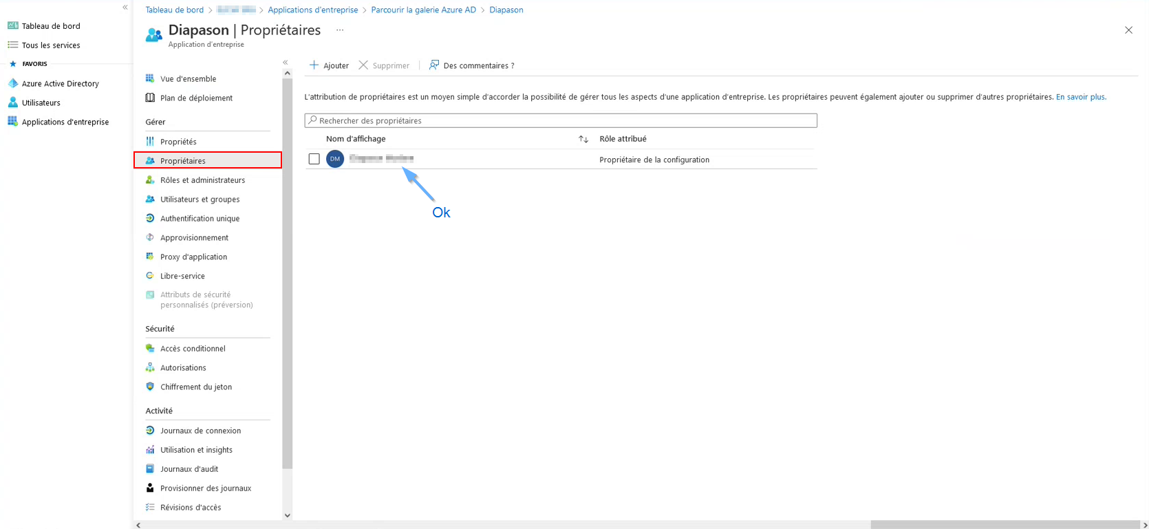 Le propriétaire doit maintenant apparaitre dans la liste