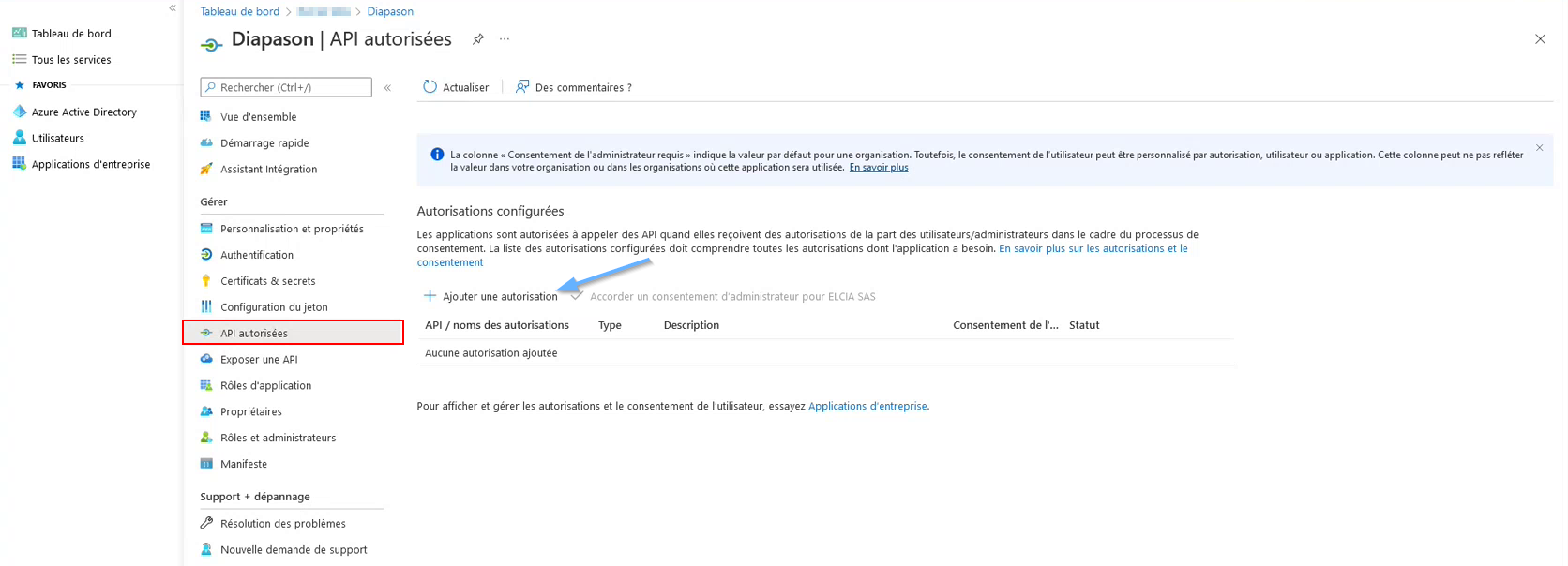 Cliquer sur « Ajouter une autorisation »