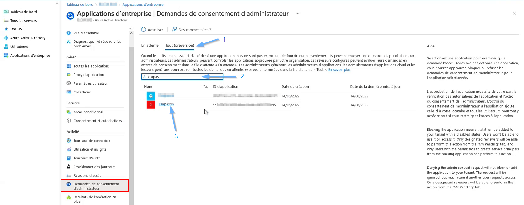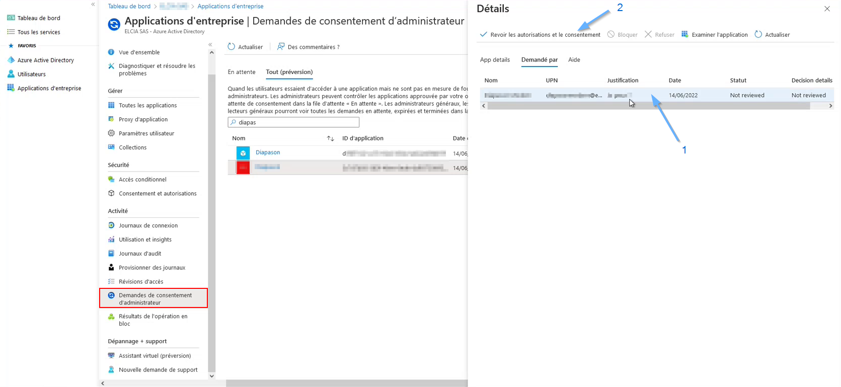 Choisir « Demandes de consentement d’administrateur »
